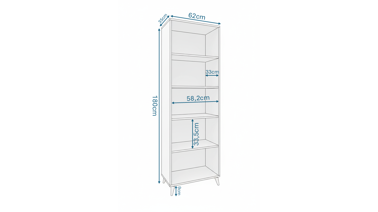 Dolabımız, 62cm genişliği, 180cm yüksekliği ve 35cm derinliği ile ihtiyaçlarınızı rahatlıkla karşılayabilecek ölçülere sahiptir.