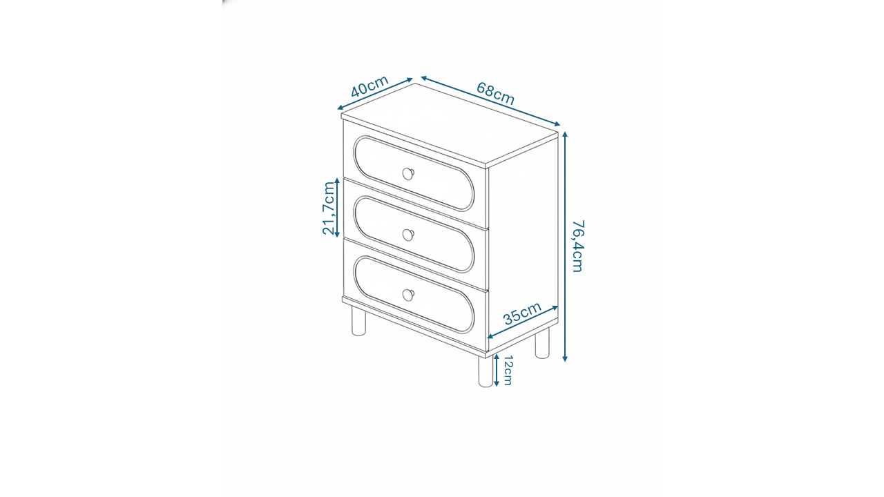 Şifonyerimiz 86cm yüksekliğinde, 68cm genişliğinde ve dıştan 42cm derinliği ile ihtiyaçlarınıza hitap edebilecek ölçülerdedir.