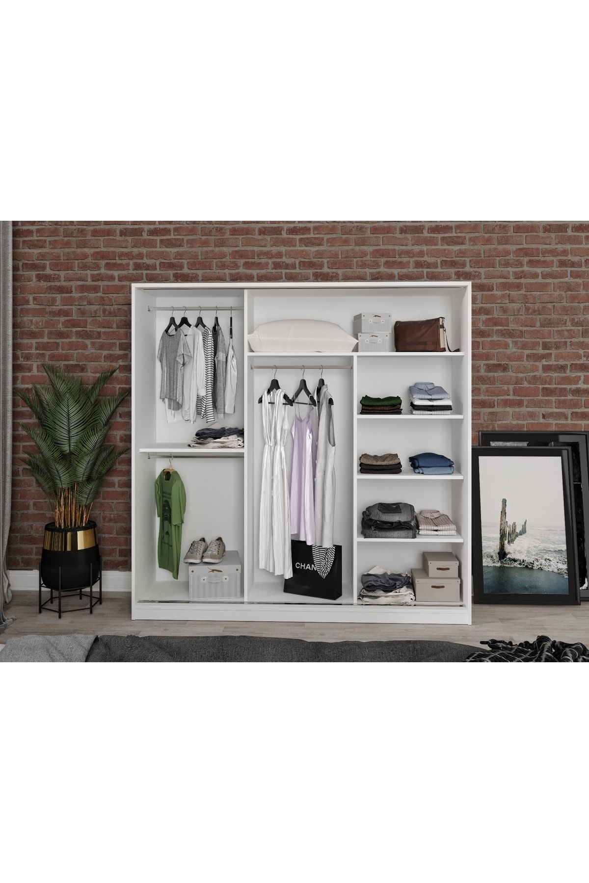 Gardırobumuz 3 adet askı alanı, 4 adet orta 1 adet büyük boyuttaki rafı sayesinde geniş bir iç hacme sahiptir.