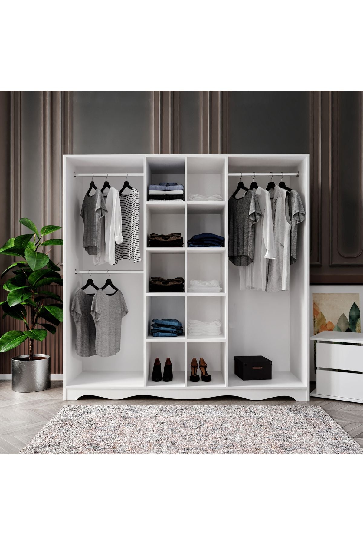 Dolabımız, 3 adet askılık ve 10 adet raf alanı ile ihtiyaçlarınızı karşılayabilecek ölçülerdedir