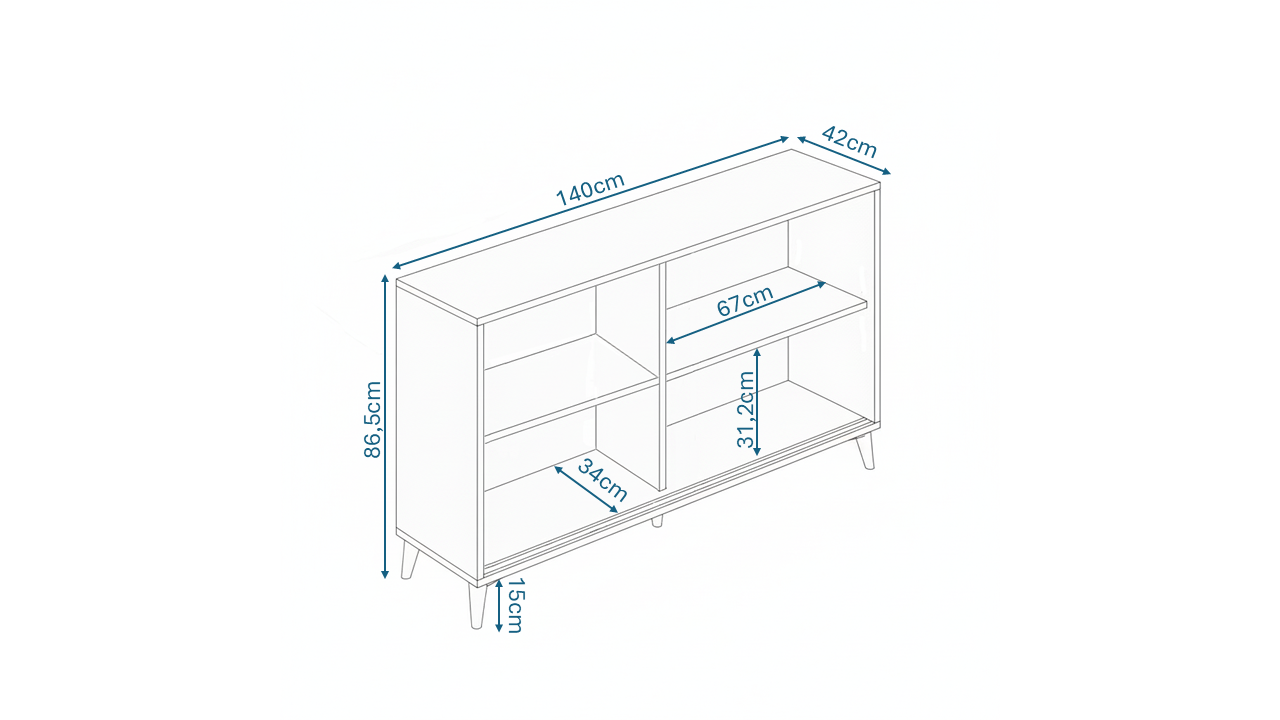 Dolabımız, 140cm genişliği, 86,5cm yüksekliği ve 42cm derinliği ile ihtiyaçlarınızı rahatlıkla karşılayabilecek ölçülere sahiptir.