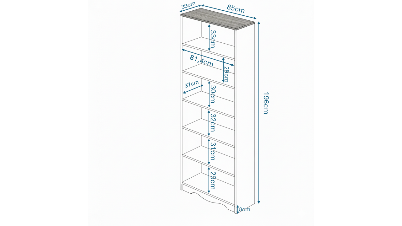 Dolabın yüksekliği 196 cm, genişliği 85cm ve derinliği 39cmdir.