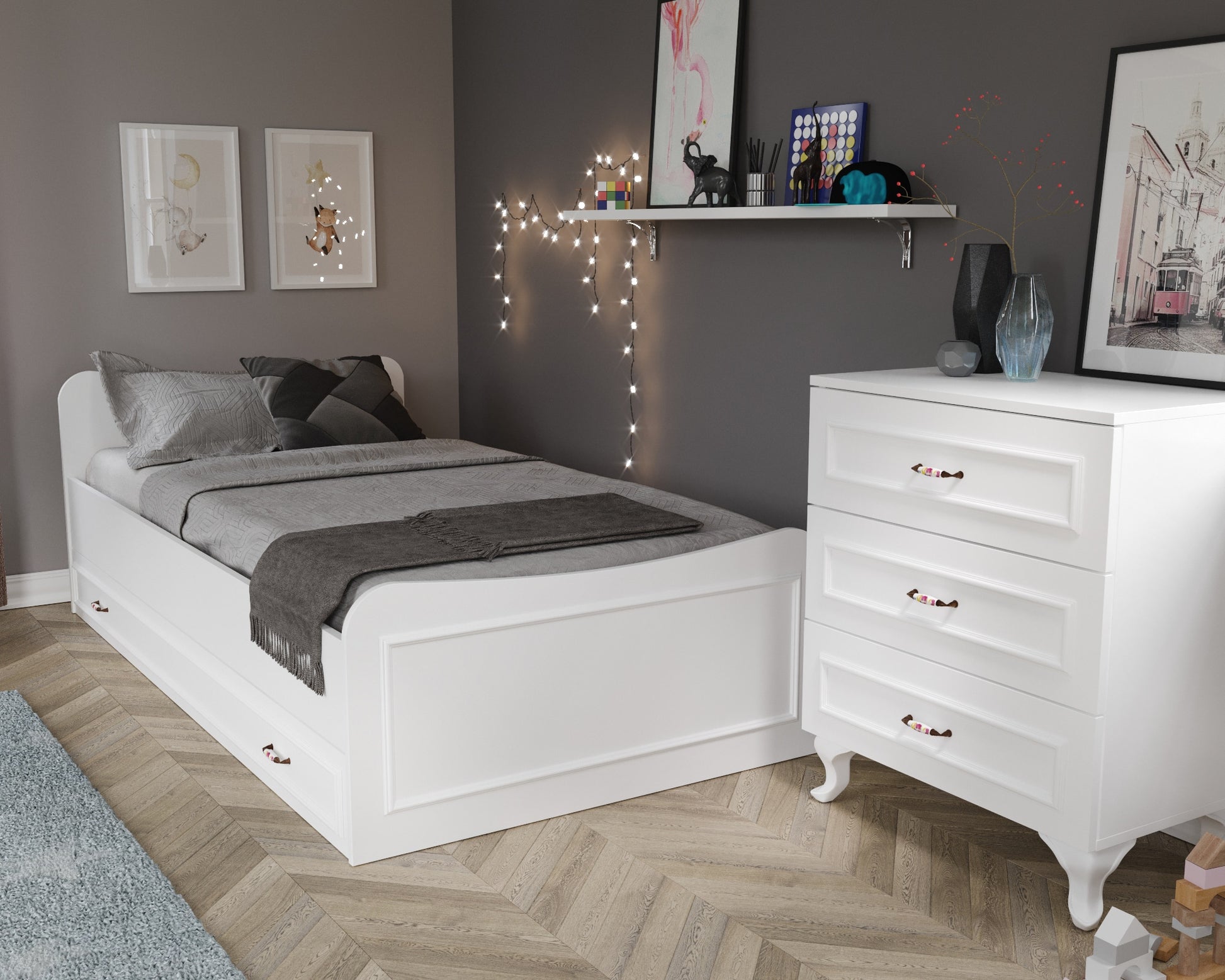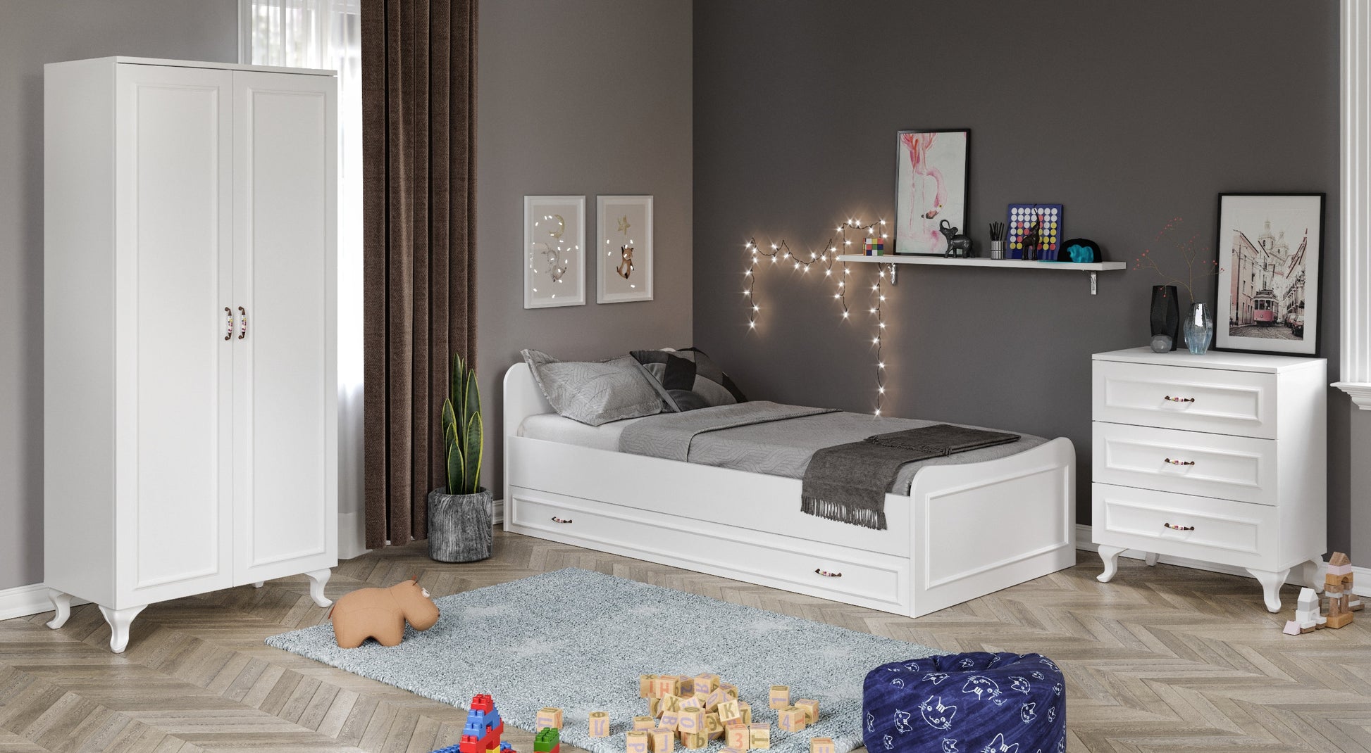 Yavrulu karyolamız 105cm genişliğinde ve 205cm uzunluğundadır. Ana karyola 100x200, yavru karyola ise 90x190 yataklara uyumludur.