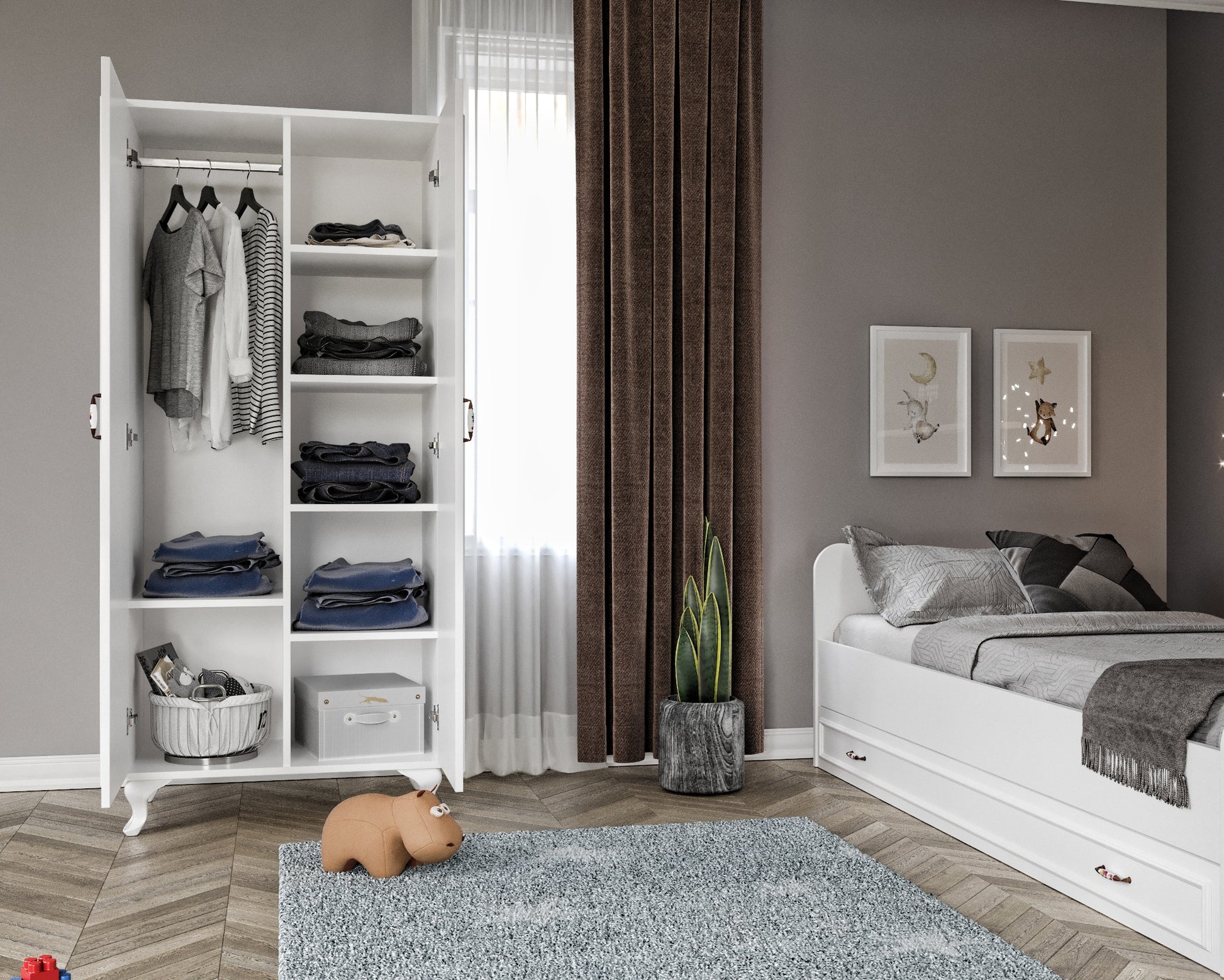 Gardırobumuz 179cm yüksekliğinde, 80cm genişliğinde ve 47cm derinliğindedir. 2 Kapaklıdır ve tamamı MDF'dir.