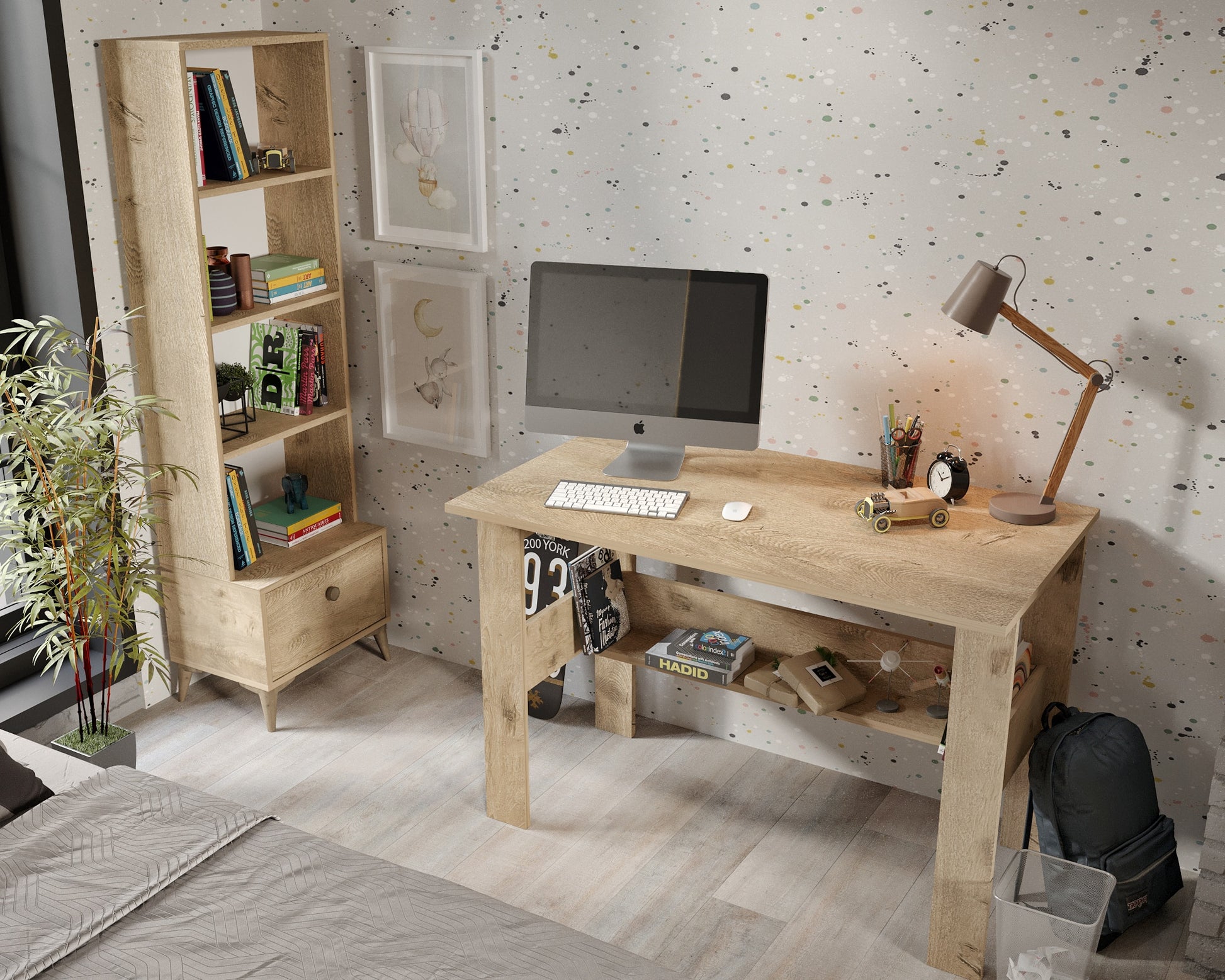 Çalışma masasının genişliği 118cm, derinliği 58cm ve yüksekliği 75cmdir.