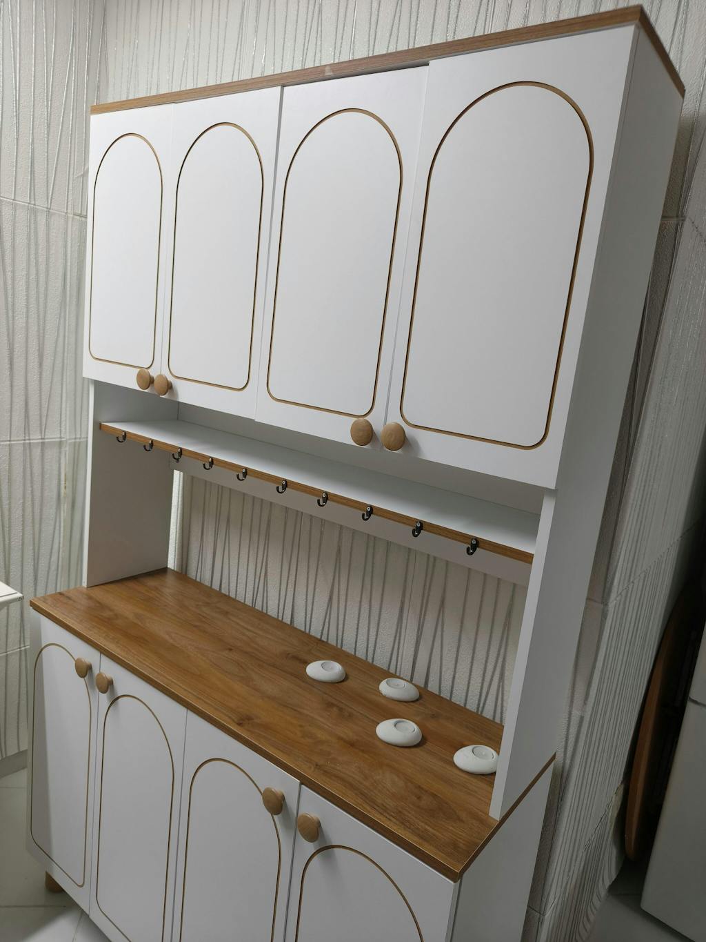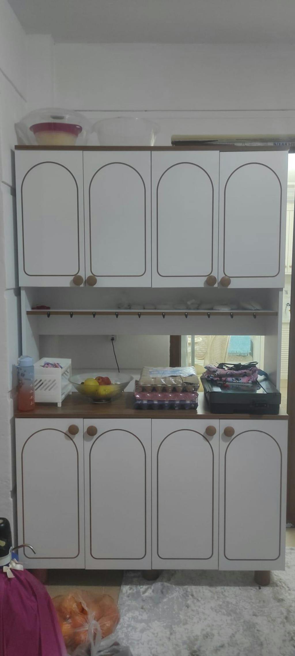 Mikro dalga fırınınızı, airfryer, kavonozlarınızı, tabaklarınızı, mutfak robotunuzu veya kahve makinenizi rahatlıkla bu dolaba yerleştirebilirsiniz.