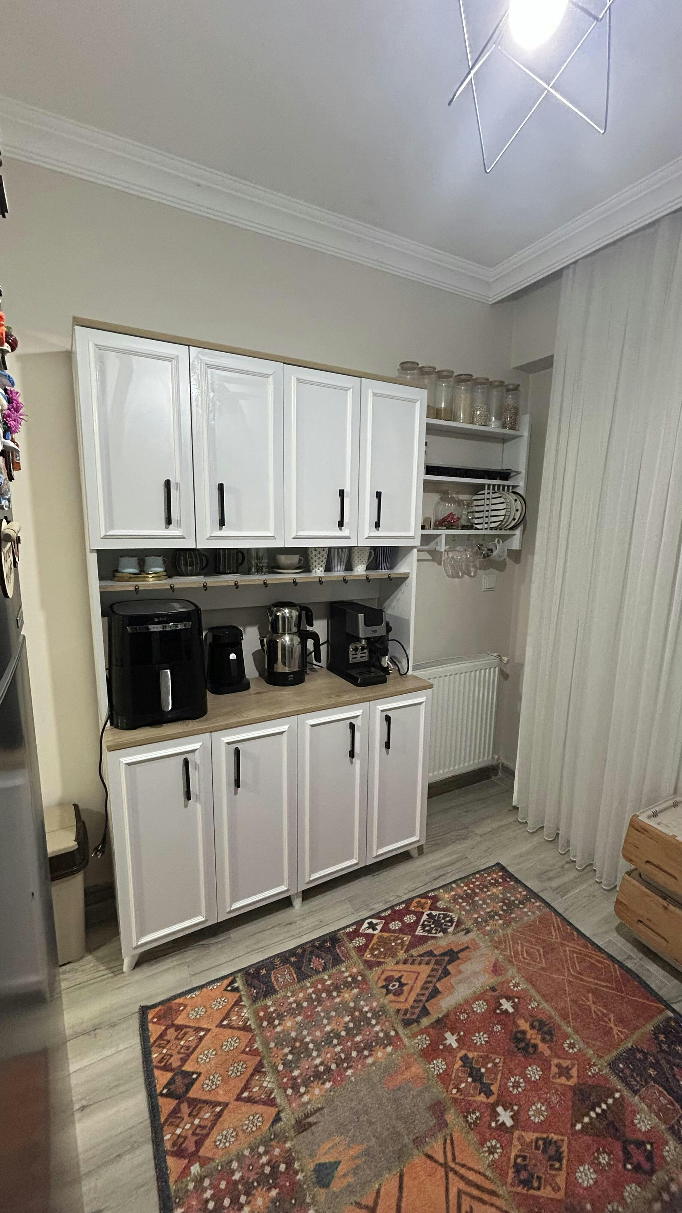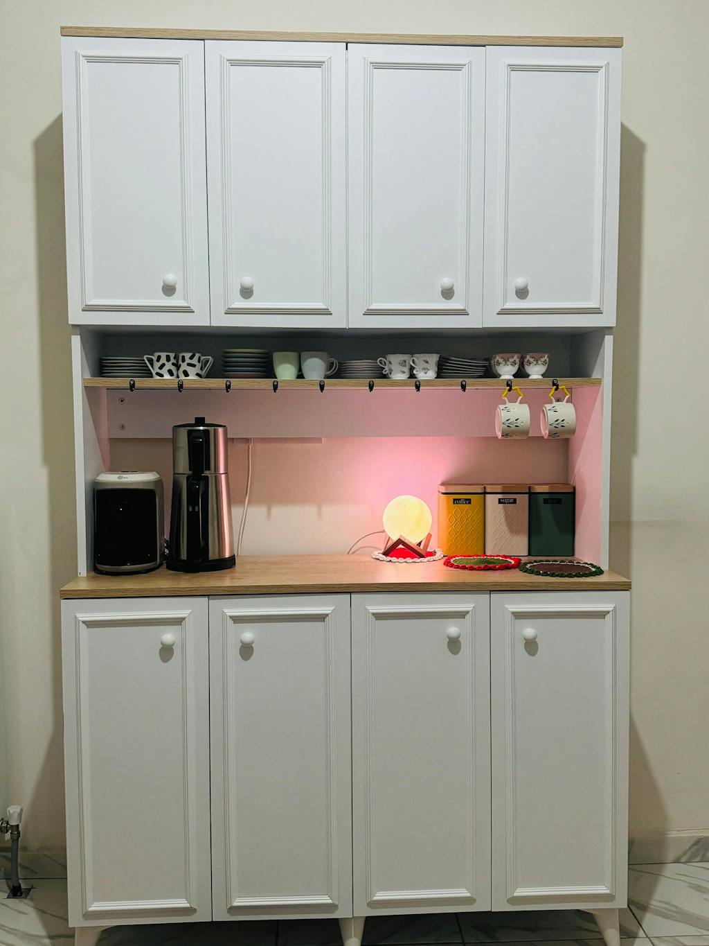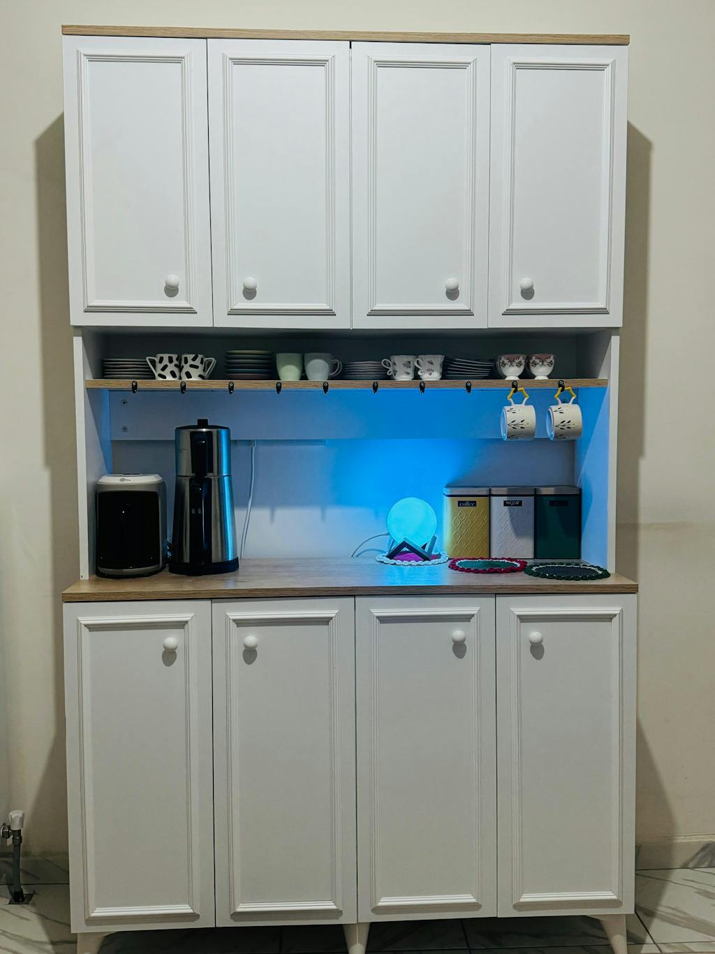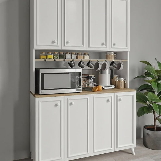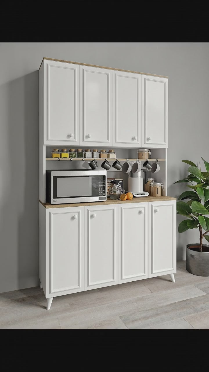 Mikro dalga fırınınızı, airfryer, kavonozlarınızı, tabaklarınızı, mutfak robotunuzu veya kahve makinenizi rahatlıkla bu dolaba yerleştirebilirsiniz.