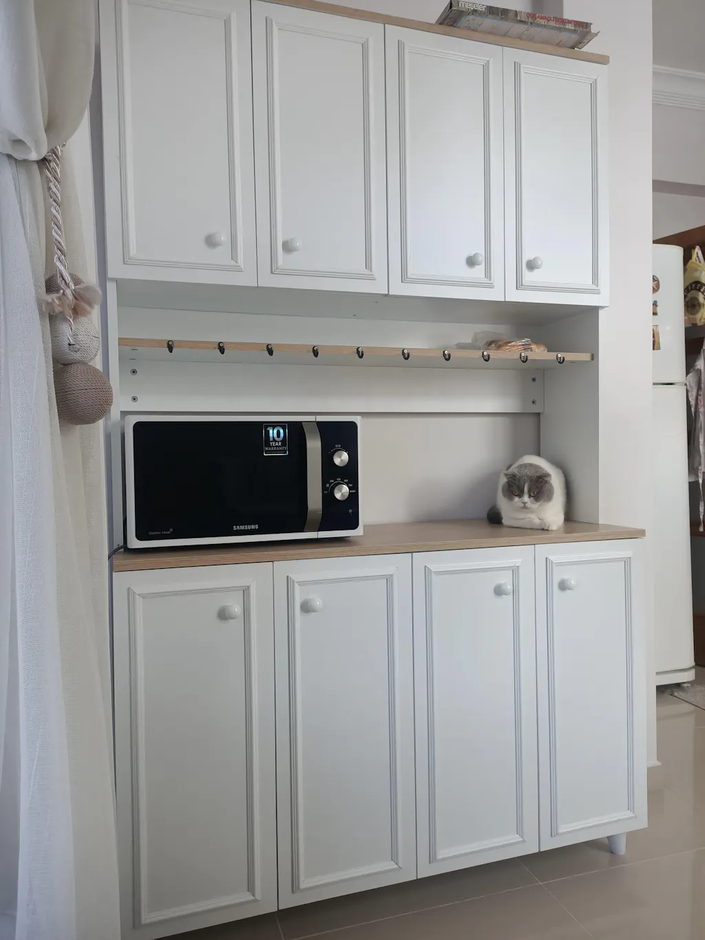 Mikro dalga fırınınızı, airfryer, kavonozlarınızı, tabaklarınızı, mutfak robotunuzu veya kahve makinenizi rahatlıkla bu dolaba yerleştirebilirsiniz.