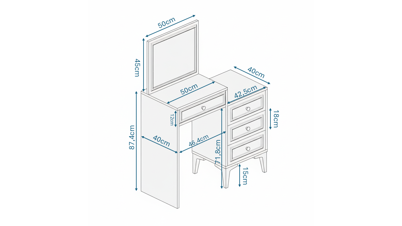 Şifonyer Derinliği 40cm yüksekliği 12cm ve Genişliği 45cmdir. 2. Resimde görülen çekmece düzenleyici de ürün ile birlikte gönderilecektir.